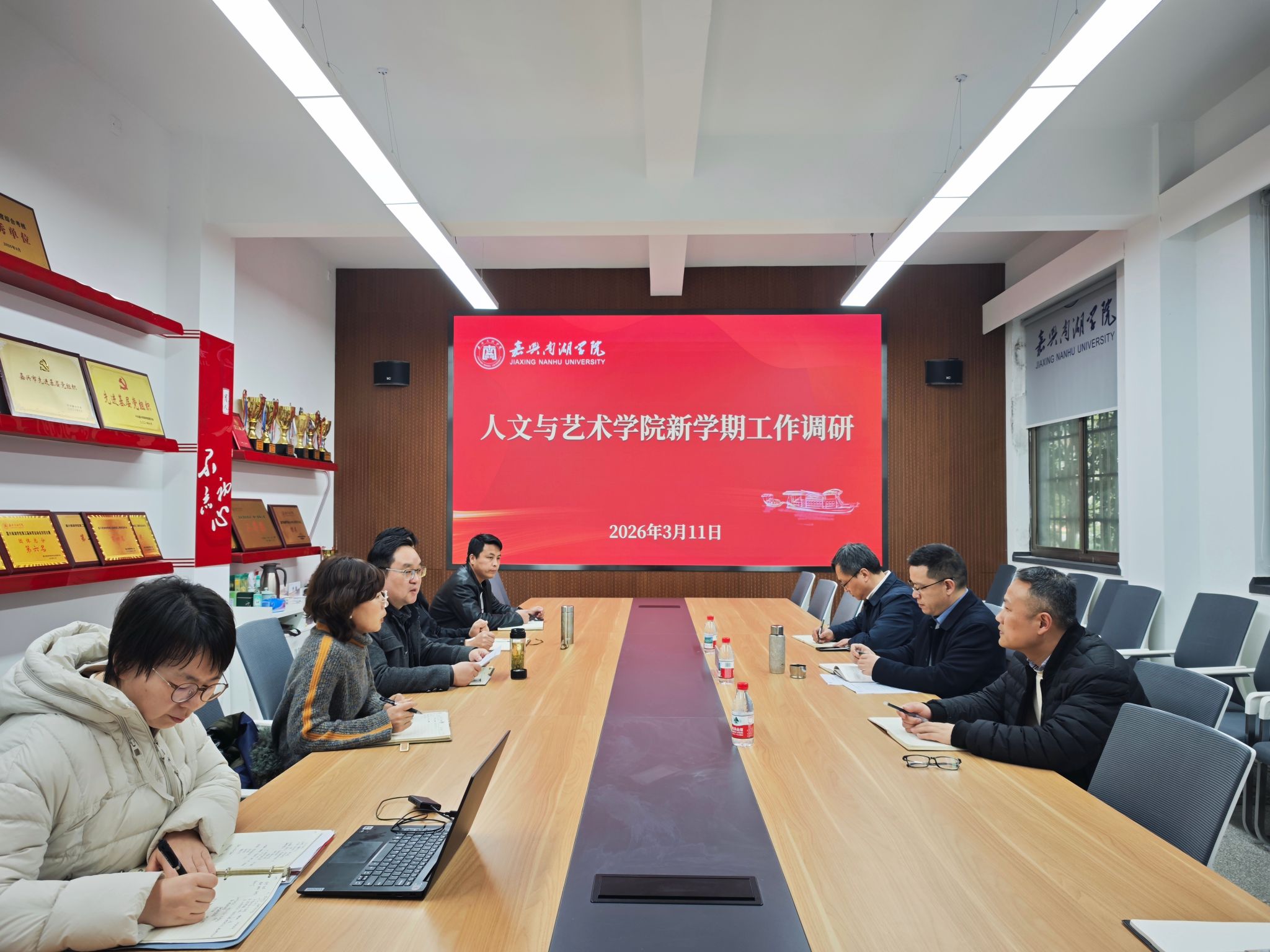 贾文胜认真听取了学院工作汇报,围绕下一阶段迎评攻坚工作提出了明确要求。他强调,本科教学评估是检验学校办学水平、推动学院高质量发展的关键契机,全校上下必须提高政治站位,以高度的责任感和使命感抓实抓细各项工作。一要强化体系建设,确保政令畅通、执行有力。要构建权责清晰、上下贯通的工作机制,严格落实“一岗双责”,将评估各项任务细化到岗、责任到人,坚决打通信息传递的 “最后一公里”,确保学校各项评估指令第一时间完整、准确传达至每一位师生、每一个工作环节,杜绝信息梗阻、执行衰减,确保各项部署不折不扣、迅速高效落地见效。二要深化全员动员,确保宣传入脑、知行合一。迎评工作没有旁观者,人人都是参与者、责任人。要坚决杜绝形式化、表面化的宣传动员,通过专题学习、主题班会、教研研讨、座谈交流等多种形式,引导全院师生深刻领会评估工作的核心内涵与根本要求,熟练掌握应知应会内容。要推动师生将迎评要求与日常教学科研、学习成长深度融合,把评估标准转化为日常工作学习的行为准则,切实凝聚起“人人关心评估、人人参与评估、人人为评估做贡献”的强大合力。三要细化成果梳理,确保特色鲜明、展示充分。要紧扣评估指标体系,系统复盘学院办学以来的发展成果,全面梳理在教学改革、科研创新、人才培养、社会服务、文化传承等方面的特色亮点,深挖专业内涵发展、家风研究、新文科建设等领域的标志性成果。要精心制定详实完善、亮点突出的展示方案,全方位、多角度、深层次展现学院的办学底蕴、育人成效与发展特色,以最充分的准备、最饱满的状态迎接评估检验。